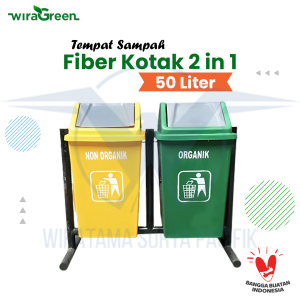 Tempat Sampah Fiber WIRAGREEN 2 in 1 Kotak 50 Liter Tiang Geser