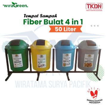 Tempat Sampah Fiber WIRAGREEN 4 in 1 Bulat 50 Liter Tiang Geser