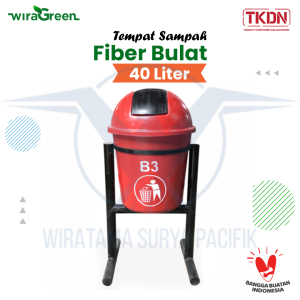 Tempat Sampah Fiber WIRAGREEN Single Bulat 40 Liter Tiang Geser