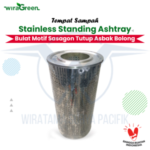 Tempat Sampah Stainless Standing Ashtray Bulat Motif Sasagon Tutup Asbak Bolong
