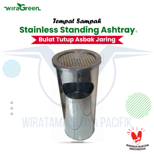 Tempat Sampah Stainless Standing Ashtray Bulat Tutup Asbak Jaring